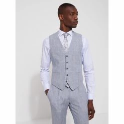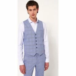 Devred Gilet coordonnable lin prince de galles for Costumes et cravates Couleur Bleu Doux