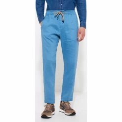 Devred Pantalon coordonnableslim en lin uni for Costumes et cravates Couleur Bleu Gitane