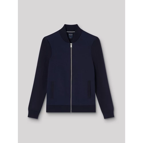 Maille jersey : Maille fine tricotée. Uni. Coupe ajustée. Col teddy. Manches longues. Fermeture zippée. Finition bord-côte en bas de manche. Finition bord-côte en bas de corps. Poches passepoiléesLe mannequin mesure 1m84 et porte du M.