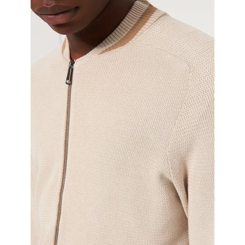 Confectionné en mélange Viscose Polyamide. Maille fantaisie : Tricot comportant des effets sur la couleur ou la structure. Motif : Uni. Coupe loose. Col teddy. Manches longues. Fermeture zippée. Finition bord-côte en bas de manche. Finition bord-côte en bas de corps. Poches passepoilées. Le mannequin mesure 1m84 et porte du M.