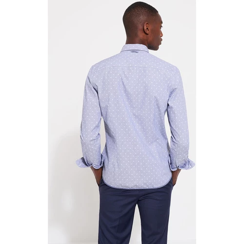 Chemise manches longues. ConfectionnĂ©e en coton : Très bon isolant, le coton offre une bonne permĂ©abilitĂ© Ă l’air Il convient parfaitement aux peaux sensibles. Coupe Slim : coupe ajustĂ©e et près du corps. Fantaisie. Tissage Popeline : tissage lisse et serrĂ©e. Col Semi Italien : col est Ă mi-chemin entre le col Français et le col Italien. Poignets arrondis. Poignet classique 1 bouton. Patte de boutonnage amĂ©ricaine, pour un look moins formel, dĂ©contractĂ© et plus authentique. 2 pinces dos. Le mannequin mesure 1m84 et porte du M.