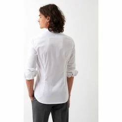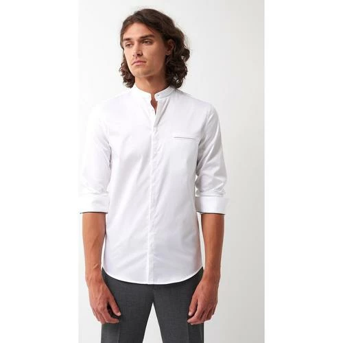 Confectionnée en coton mélangé. Coupe Extra slim : coupe étroite et près du corps. Tissage Popeline : tissage lisse et serrée. Motif : Uni. Col Officier : col boutonné sans rabat. Poignets arrondis. Poignet classique 1 bouton. Patte de boutonnage cachée. 1 poche passepoilée. 2 pinces dos. Poignets ajustables. Stretch extensible : Le tissu stretch offre une grande liberté de mouvement, et résiste au froissement, pour un porté toujours impeccable. Repassage facile : repassage léger. Le mannequin mesure 1m84 et porte du M.
