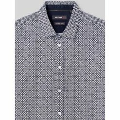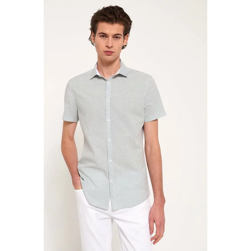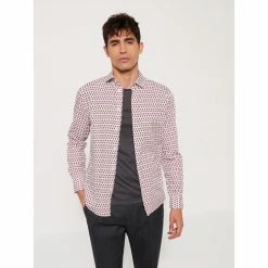 Confectionnée en coton mélangé. Coupe Extra slim : coupe étroite et près du corps. Motif : Géométrique. Col Semi Italien : col est à mi-chemin entre le col Français et le col Italien. Patte de boutonnage américaine, pour un look moins formel, décontracté et plus authentique. 2 pinces dos. Détail contrasté intérieur pied de col. Le mannequin mesure 1m84 et porte du M.