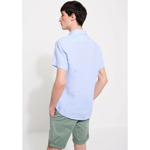 Confectionnée en lin. Coupe Slim : coupe ajustée et près du corps. Motif : Uni. Col Italien : col ouvert aux pointes plus écartées. Patte de boutonnage classique surpiquée au bord. 2 pinces dos. Détail contrasté intérieur pied de col. Bouton fantaisie. Le lin est une fibre naturelle par nature elle est biodégradable et écologique. Le lin laisse l’air passer et diminue la sensation de chaleur en été en évitant la transpiration. Le mannequin mesure 1m84 et porte du M.