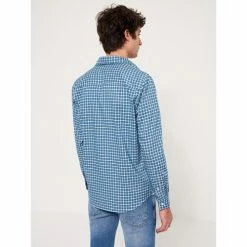 Coupe Regular : coupe droite. Motif : Carreaux. Col Français/classique : col aux pointes marquées et serrés. Poignets droits. Poignet classique 1 bouton. Patte de boutonnage classique surpiquée au bord. 2 poches plaquées à rabat + bouton. Sans pince dos. Détail contrasté intérieur pied de col. Détail contrasté intérieur poignets. Le mannequin mesure 1m84 et porte du M.