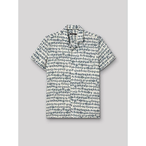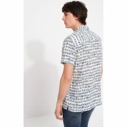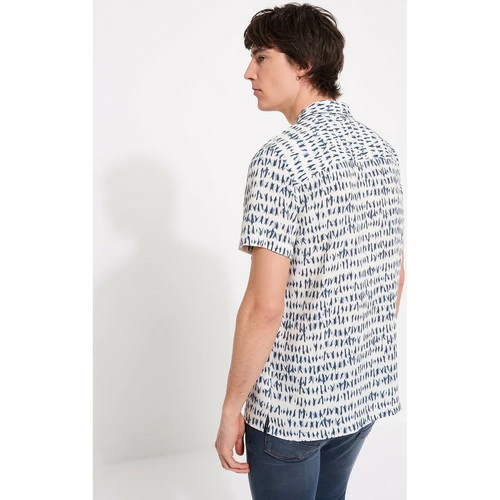Confectionnée en viscose. Coupe Regular : coupe droite. Motif : Fantaisie. Col Requin : col à revers cran ouvert. Patte de boutonnage classique, pour look plus urbain et sophistiqué. Sans pince dos. Tissu Français. Détail contrasté intérieur pied de col. Le mannequin mesure 1m84 et porte du M.