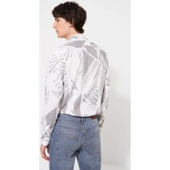 Coupe Slim : coupe ajustée et près du corps. Motif : Géométrique. Col Semi Italien : col est à mi-chemin entre le col Français et le col Italien. Poignets cassés. Poignet classique 1 bouton. Patte de boutonnage classique, pour look plus urbain et sophistiqué. 2 pinces dos. Détail contrasté intérieur poignets. Le mannequin mesure 1m84 et porte du M.