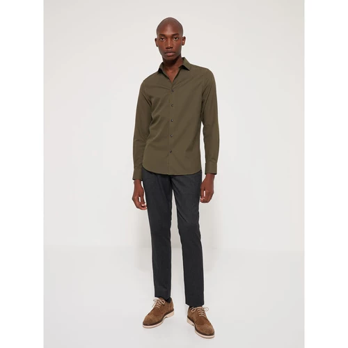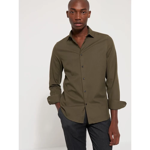 Chemise manches longues. ConfectionnĂ©e en coton : Très bon isolant, le coton offre une bonne permĂ©abilitĂ© Ă l’air Il convient parfaitement aux peaux sensibles. Coupe Slim : coupe ajustĂ©e et près du corps. Uni. Tissage Popeline : tissage lisse et serrĂ©e. Col Semi Italien : col est Ă mi-chemin entre le col Français et le col Italien. Poignets cassĂ©s. Poignet classique 1 bouton. Patte de boutonnage classique, pour look plus urbain et sophistiquĂ©. 2 pinces dos. Coudières. Le mannequin mesure 1m84 et porte du M.