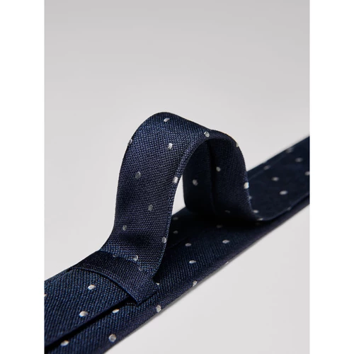 Confectionné en 100% soie. Motif : à pois.Largeur : 6cm x 3cm. Longueur : 147 cm.Bout en pointe. Bride dans le même tissu que la cravate.