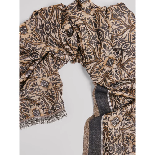 Confectionné en 100% viscose. Motif : fantaisie. Longueur : 180 cm. Largeur : 70 cm. Finition : Franges 1,5 cm.