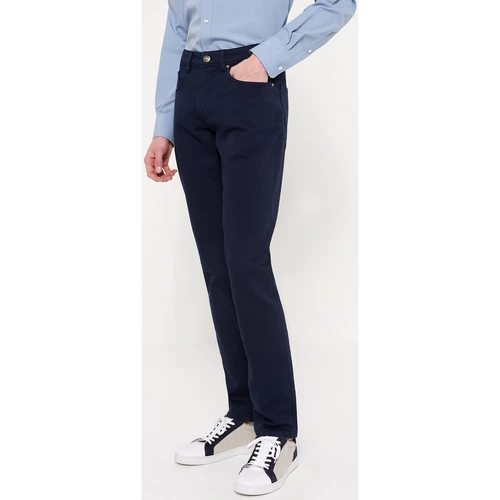 ConfectionnĂ© en coton mĂ©langĂ©. Coupe Slim : Coupe Ă©troite sur la cuisse et le bas de jambe. Uni. Fermeture bouton et fermeture Ă©clair. 2 poches cavalieres arrondis Ă l’avant. Ceinture Droite5 passants pour ceinture. 2 poches plaquĂ©es arrières. Poche ticket avant. Bas de pantalon avec ourlet. Contient de l’Ă©lasthanne : fibre synthĂ©tique rĂ©putĂ©e pour son Ă©lasticitĂ© offrant au vetement une libertĂ© de mouvement. Le mannequin mesure 1m84 et porte du 40.