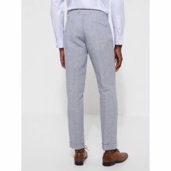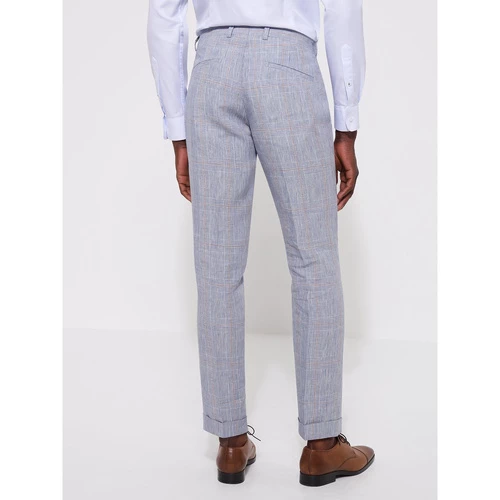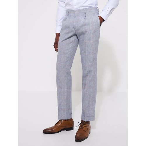 ConfectionnĂ© en Lin. Coupe Slim : Coupe Ă©troite sur la cuisse et le bas de jambe. Motif : Prince de Galles. Fermeture Ă agrafe et bouton intĂ©rieur et fermeture Ă©clair cachĂ©e. 2 poches Italiennes Ă l’avant. Ceinture Droite. 6 passants pour ceinture. 2 poches passepoilĂ©es arrières. Bas de pantalon avec revers. Le mannequin mesure 1m84 et porte du 40.
