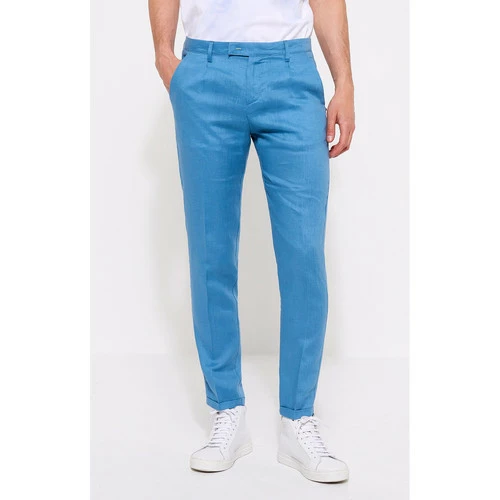 ConfectionnĂ© en Lin. Coupe Slim : Coupe Ă©troite sur la cuisse et le bas de jambe. Naturel. Fermeture bouton et fermeture Ă©clair. 2 poches Italiennes Ă l’avant. Ceinture Droite. 6 passants pour ceinture. 2 poches passepoilĂ©e arrières et rabats. Bas de pantalon avec revers. Le mannequin mesure 1m84 et porte du 40.