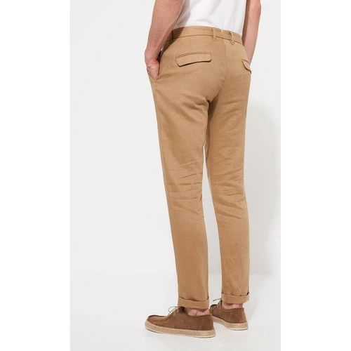 ConfectionnĂ© en Lin. Coupe Slim : Coupe Ă©troite sur la cuisse et le bas de jambe. Naturel. Fermeture bouton et fermeture Ă©clair. 2 poches Italiennes Ă l’avant. Ceinture Droite. 6 passants pour ceinture. 2 poches passepoilĂ©e arrières et rabats. Bas de pantalon avec revers. Le mannequin mesure 1m84 et porte du 40.