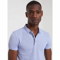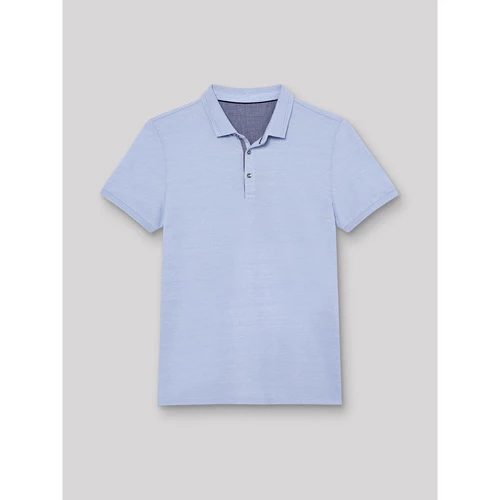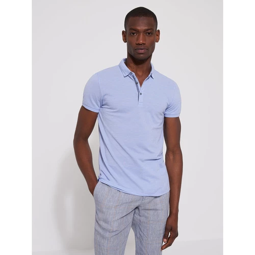 Coupe Slim : coupe ajustée et près du corps. Col polo. Motif : Chiné. Tissage Jersey : Maille fine tricotée. Patte boutonnée. Bas de manche bord côtes. Bas de corps avec ourlet. Fentes latérales. Détail contrasté pied de col. Le mannequin mesure 1m84 et porte du M.