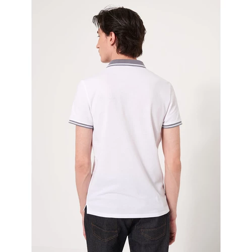Confectionné en poly coton. Coupe Slim : coupe ajustée et près du corps. Col polo. Motif : Uni. Tissage relief fantaisie. Patte deux boutons. Bas de manche bord côtes. Bas de corps avec ourlet. Broderie poitrine. Détail contrasté sur patte de boutonnage. Détail contrasté col.Le mannequin mesure 1m84 et porte du M.