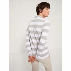Confectionné en coton majoritaire. Coupe Slim : coupe ajustée et près du corps. Col polo. Motif : Rayé. Tissage Jersey : Maille fine tricotée. Patte cachée boutonnée. Bas de manche bord côtes. Bas de corps avec ourlet. Le mannequin mesure 1m84 et porte du M.