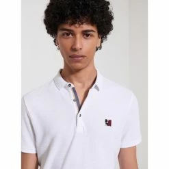 Polo manches courtes. Coupe Slim : coupe ajustée et près du corps. Confectionné en coton majoritaire. Tissage Gauffré. Uni. Col polo.Patte boutonnée. Bas de manche bord côtes. Bas de corps avec ourlet. Détail contrasté pied de col et patte de boutonnage. Fentes latérales.Le mannequin mesure 1m84 et porte du M.