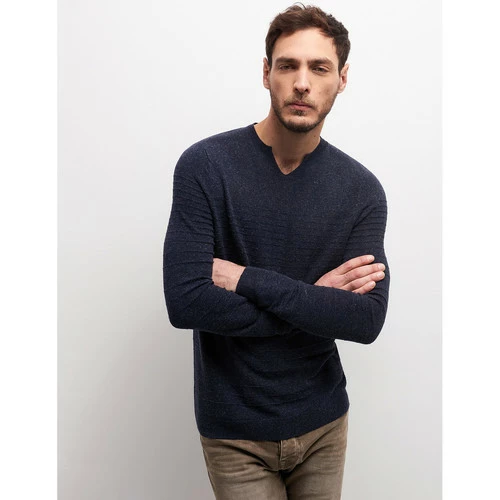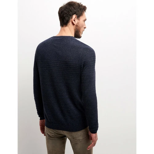 Confectionné en mélange Viscose et Lin. Maille jersey : Maille fine tricotée. Motif : Uni. Coupe ajustée. Col rond avec fente devantManches longues. Finition bord-côte en bas de manche. Finition bord-côte en bas de corps. Le mannequin mesure 1m84 et porte du M.
