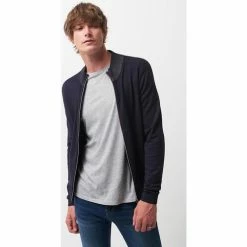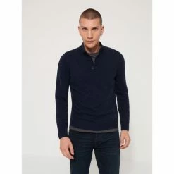 Devred Pull col montant zippé en laine mérinos for Pulls & Gilets Couleur Bleu Artic