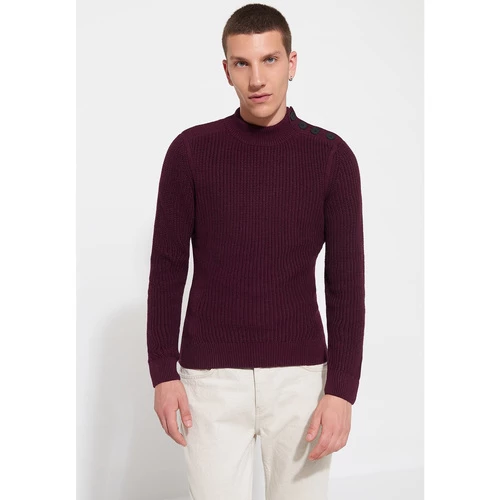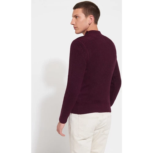 Maille perlée. Uni. Coupe ajustée. Col montant. Manches longues. Finition bord-côte en bas de manche. Finition bord-côte en bas de corps. Le mannequin mesure 1m84 et porte du M.