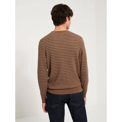 ConfectionnĂ© en Coton. Très bon isolant, le coton offre une bonne permĂ©abilitĂ© Ă l’air. Il convient parfaitement aux peaux sensibles. Maille fantaisie : Tricot comportant des effets sur la couleur ou la structure. Motif : RayĂ©. Coupe loose. Col rond. Manches longues. Finition bord-cĂ´te en bas de manche. Finition bord-cĂ´te en bas de corps. Le mannequin mesure 1m84 et porte du M.
