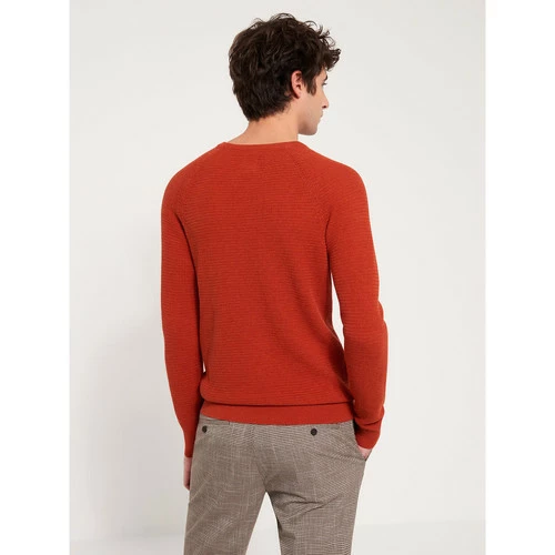 ConfectionnĂ© en Coton. Très bon isolant, le coton offre une bonne permĂ©abilitĂ© Ă l’air. Il convient parfaitement aux peaux sensibles. Maille fantaisie : Tricot comportant des effets sur la couleur ou la structure. Motif : Uni. Coupe ajustĂ©e. Col rond. Manches longues raglan.Finition bord-cĂ´te en bas de manche. Finition bord-cĂ´te en bas de corps. Le mannequin mesure 1m84 et porte du M.