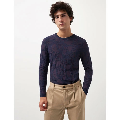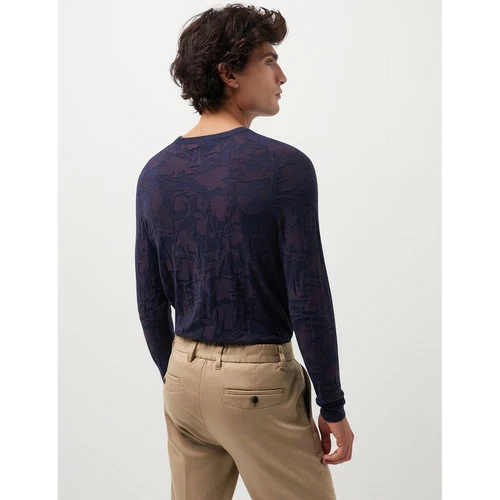 Confectionné en mélange Viscose Polyamide. Maille jacquard : Tissage de fils de couleurs entrecroisés. Motif : Bi-color. Coupe ajustée. Col rond. Manches longues. Finition bord-côte en bas de manche. Finition bord-côte en bas de corps. Le mannequin mesure 1m84 et porte du M.