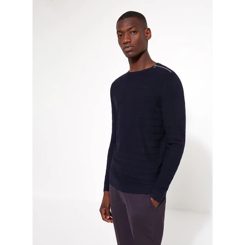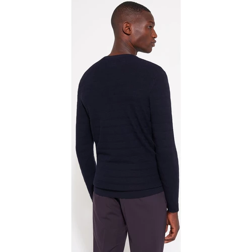 Confectionné en Viscose Certifiée.Maille jeux de points. Uni. Coupe ajustée. Col rond. Manches longues. Finition bord-côte en bas de manche. Finition bord-côte en bas de corps. La Vicose certifiée est élaborée à partir de matière première issue de forets durables et certifiée. La production de viscose certifiée préserve l’eau en réduisant sa consommation et contribue à limiter les émissions de CO2. Le mannequin mesure 1m84 et porte du M.
