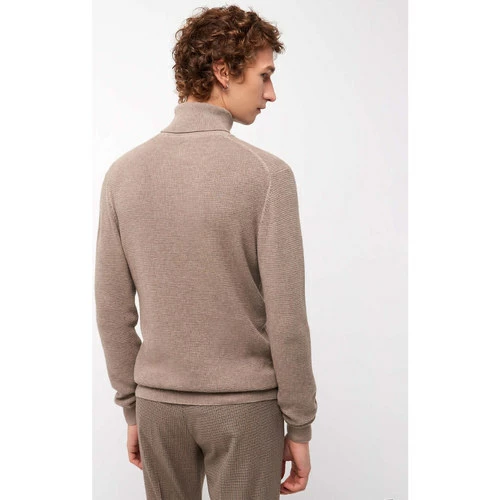Maille fantaisie : Tricot comportant des effets sur la couleur ou la structure. Motif : Uni. Coupe ajustée. Col roulé. Manches longues. Finition bord-côte en bas de manche. Finition bord-côte en bas de corps. Le mannequin mesure 1m84 et porte du M.