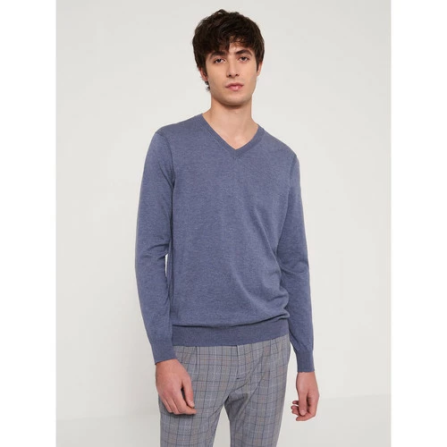 Contient de la Laine.Maille jersey : Maille fine tricotée. Motif : Uni. Coupe droite. Col V. Manches longues. Finition bord-côte en bas de manche. Finition bord-côte en bas de corps. Le mannequin mesure 1m84 et porte du M.