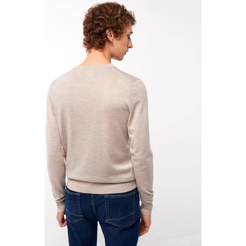 Confectionné en Laine Mérinos. Finesse exceptionnelle, chaleur et durabilité, la laine 100% mérinos apporte un vrai confort par rapport à la laine traditionnelle. Maille jersey : Maille fine tricotée. Motif : Uni. Coupe ajustée. Col V. Manches longues. Finition bord-côte en bas de manche. Finition bord-côte en bas de corps. Collection responsable en(vie)Ce vêtement est confectionné avec de la laine RWS. Le label Responsible Wool Standard est une norme indépendante et prise de manière volontaire. Ce label s’appuie à la fois sur la protection du bien-etre animal, la traçabilité de la laine, le bien-être des moutons, le respect des pâturages et des conditions de travail. Le mannequin mesure 1m84 et porte du M.
