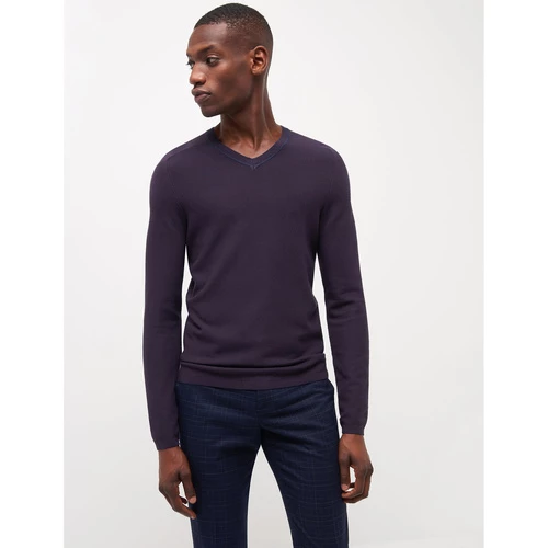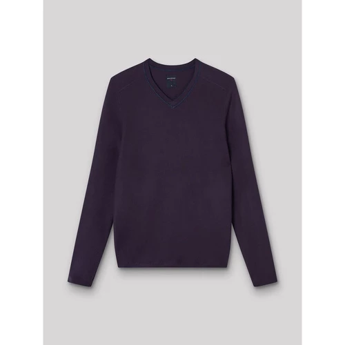 Confectionné en mélange Viscose Polyamide. Maille fantaisie : Tricot comportant des effets sur la couleur ou la structure. Motif : Bi-color. Coupe ajustée. Col V. Manches marteau. Finition bord-côte en bas de manche. Finition bord-côte en bas de corps. Le mannequin mesure 1m84 et porte du M.