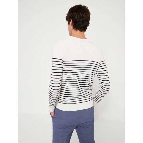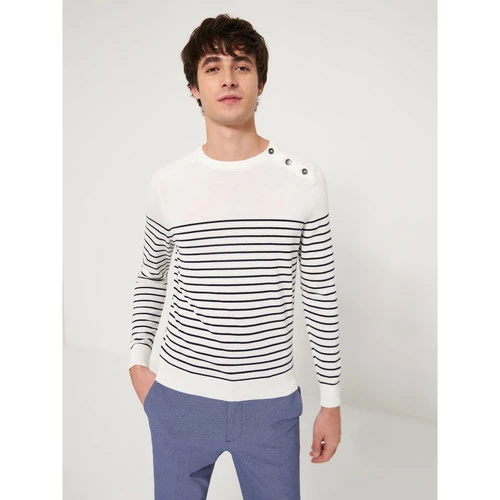 ConfectionnĂ© en Coton Biologique. Coton cultivĂ© sans pesticide, insecticide ou produit chimique. Maille jersey : Maille fine tricotĂ©e. Motif : Bi-color. Coupe ajustĂ©e. Col rond. Manches longues. Finition bord-cĂ´te en bas de manche. Finition bord-cĂ´te en bas de corps. Épaule boutonnĂ©e. Empiècements Ă©paules. Collection responsable en(vie). Ce vĂŞtement est confectionnĂ© avec du coton biologique. Ce coton est cultivĂ© sans pesticide, ni engrais chimique. La consommation d’eau nĂ©cessaire pour sa culture est rĂ©duite très fortement par rapport au coton conventionnel.Le mannequin mesure 1m84 et porte du M.