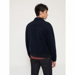 Sweat. Coupe regular : coupe droite et ample. Confectionné en coton majoritaire. Tissage chevron : tissage créant un motif de rayures obliques dans les 2 sens. Motif : uni. Col plat. Fermeture à boutons pressions. Poche poitrine plaquée avec rabat. Poignet boutonné bas de manches. Bas de corps avec ourlet. Poches côtés insérées. Le mannequin mesure 1m84 et porte du M.