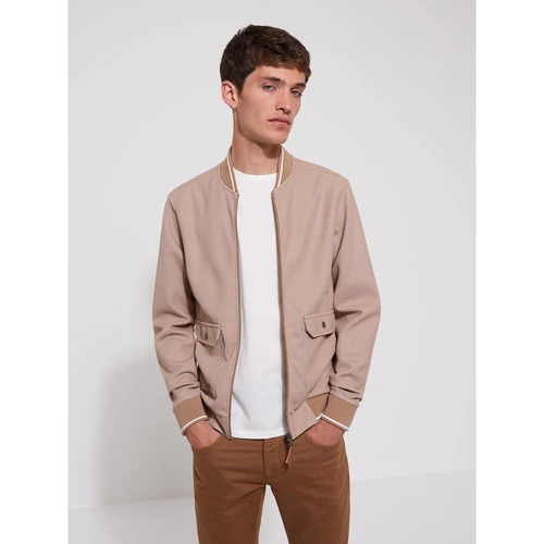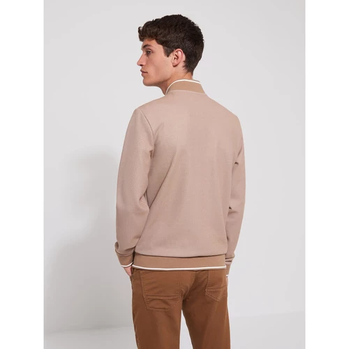Sweat. Coupe Slim : coupe ajustée et près du corps. Confectionné en poly coton. Tissage relief fantaisie. Bi-color. Col teddy. Fermeture à glissière. Poches devant plaquées avec rabats. Bas de manche bord côtes double. Bas de corps bord côtes double. Le mannequin mesure 1m84 et porte du M.