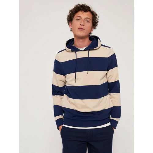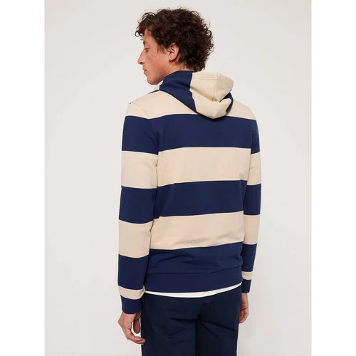 Confectionné en coton biologique majoritaire Coupe Slim : coupe ajustée et près du corps. A capuche. Motif : Rayé. Tissage Jersey : Maille fine tricotée. Poche devant kangourou. Bas de manche bord côtes double. Bas de manche bord côtes double. Le mannequin mesure 1m84 et porte du M.