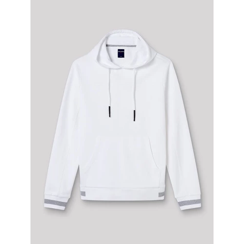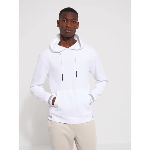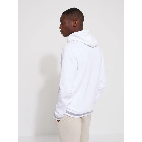 Sweat. Coupe slim : coupe ajustée et près du corps. Confectionné en coton majoritaire. Tissage molleton. Morif : uni. Capuche doublée avec cordon de serrage. Poche devant kangourou. Bas de manche bord côtes double. Bas de corps bord côtes double. Le mannequin mesure 1m84 et porte du M.