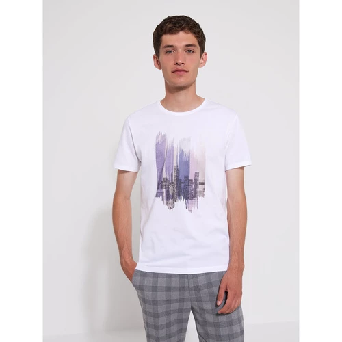 Tee-shirt manches courtes. Coupe Slim : coupe ajustée et près du corps. Confectionné en coton viscose. Tissage Jersey : Maille fine tricotée. Motif placé devant. Col rond finition bande jersey. Bas de manche avec ourlet. Bas de corps avec ourlet. Le mannequin mesure 1m84 et porte du M.
