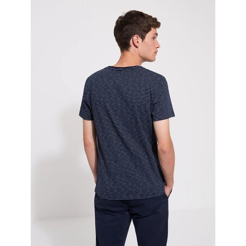 Tee-shirt manches courtes. Coupe slim : coupe ajustĂ©e et près du corps. ConfectionnĂ© en coton. Très bon isolant, le coton offre une bonne permĂ©abilitĂ© Ă l’air. Il convient parfaitement aux peaux sensibles. Tissage Jersey : Maille fine tricotĂ©e. Motif : rayĂ©. Col rond finition bordcotes. Bas de manche avec ourlet. Bas de corps avec ourlet. Le mannequin mesure 1m84 et porte du M.