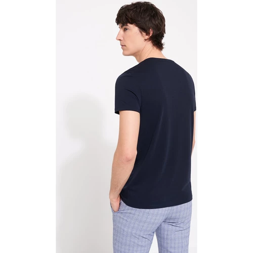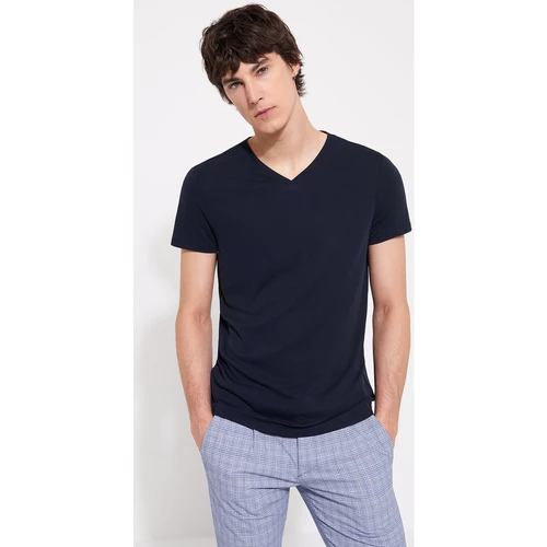 Confectionné en viscose majoritaire. Coupe Slim : coupe ajustée et près du corps. Col V finition bordcotes. Motif : Uni. Tissage côte fine.Bas de manche avec ourlet. Bas de corps avec ourlet. Le mannequin mesure 1m84 et porte du M.