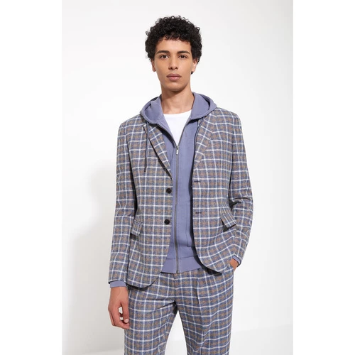 Confectionné en poly-viscose. Coupe Slim : coupe ajustée et près du corps. Motif : Carreaux. Fermeture avant à 2 boutons. Col crans ouverts. Poche poitrine passepoilée.2 poches devant à passepoils et rabats.Poignets avec 4 boutons. 2 fentes au dos. Le mannequin mesure 1m84 et porte du 50.