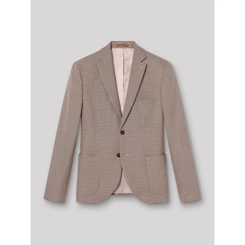 Confectionné en poly-viscose. Coupe Slim : coupe ajustée et près du corps. Motif : Pied de puce. Fermeture avant à 2 boutons. Col crans ouverts. Poche poitrine passepoilée.2 poches devant plaquées. Poignets avec 3 boutons. 2 fentes au dos. Le mannequin mesure 1m84 et porte du 50.