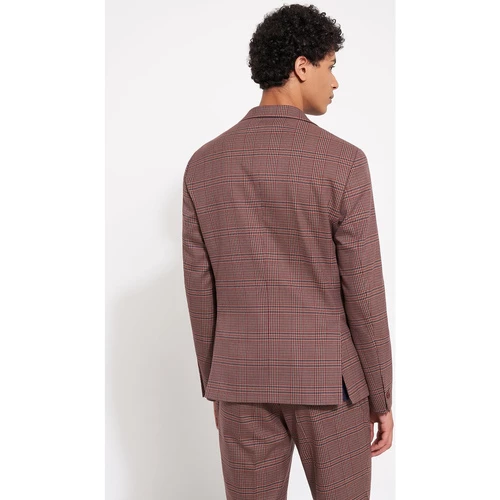 Confectionné en poly-viscose. Coupe Extra slim : coupe étroite et près du corps. Motif : Carreaux. Fermeture avant à 1 bouton.Col crans ouverts. Poche poitrine passepoilée.2 poches devant à passepoils et rabats.Poignets avec 1 bouton.2 fentes au dos. Le mannequin mesure 1m84 et porte du 50.