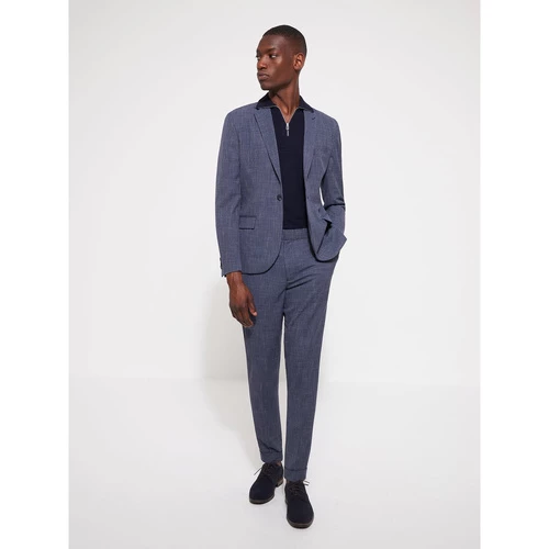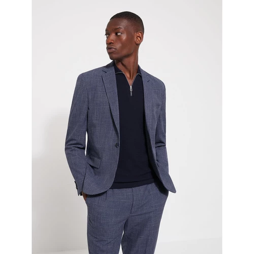 Confectionné en poly-viscose. Coupe extra-slim : coupe étroite et près du corps. Motif : carreaux. Fermeture avant à 1 bouton. Col crans ouverts. Poche poitrine passepoilée.2 poches devant à passepoils et rabats. Poignets avec 3 boutons. 1 fente au dos. Le mannequin mesure 1m84 et porte du 50.