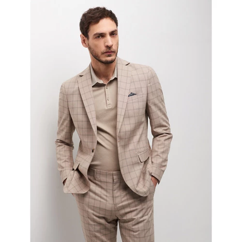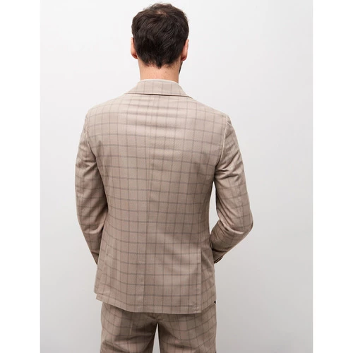 Confectionné en poly-viscose. Coupe Slim : coupe ajustée et près du corps. Motif : Carreaux. Fermeture avant à 1 bouton.Col crans ouverts. Poche poitrine passepoilée. 2 poches devant à passepoils et rabats. Poignets avec 4 boutons. 2 fentes au dos. Veste doublée. 2 poches intérieures. Rembourrage épaule allègé. Le mannequin mesure 1m84 et porte du 50.