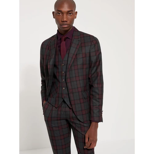 Confectionné en poly-viscose.Coupe slim : coupe ajustée et près du corps. Motif : carreaux. Fermeture avant à 2 boutons. Poche poitrine passepoilée.2 poches devant à passepoils et rabats.Poignets avec 4 boutons. 1 fente au dos. Veste doublée. 2 poches intérieures. Rembourrage épaule classique. Le mannequin mesure 1m84 et porte du 50.
