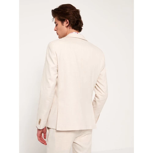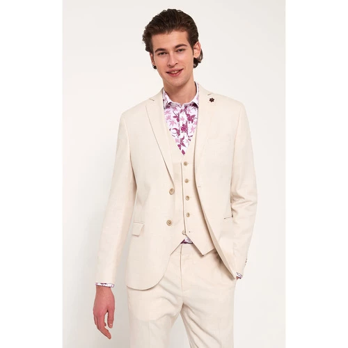 Confectionné en poly-viscose. Coupe Slim : coupe ajustée et près du corps. Tissage Natté : tissage doux, solide et riche avec un aspect damier. Motif : Uni. Fermeture avant à 2 boutons. Col crans ouverts. Poche poitrine passepoilée. 2 poches devant plaquées. Poignets avec 4 boutons. 2 fentes au dos. Veste doublée. 2 poches intérieures. Rembourrage épaule allègé. Le mannequin mesure 1m84 et porte du 50.